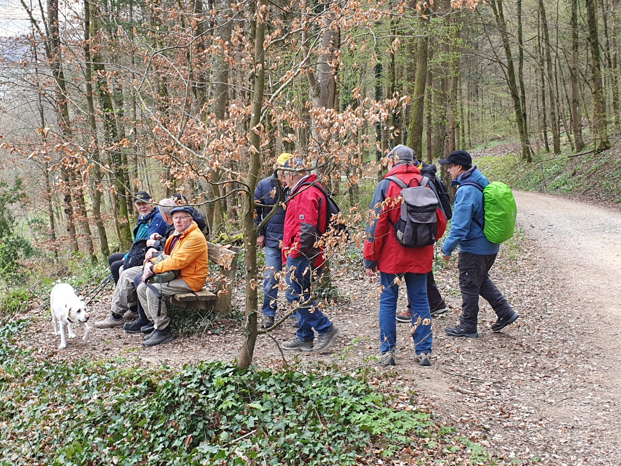 Zur beinahe christlichen Morgenstunde um halb neun traf sich unsere muntere Wandergruppe am Bahnhöfli in Therwil zur zweiten GATAWA des Jahres. Der Wetterbericht versprach einen Temperatursturz, kalten Westwind und Regen ab dem Nachmittag – aber der Morgen zeigte sich gnädig: trocken, kühl, aber gut wanderbar.