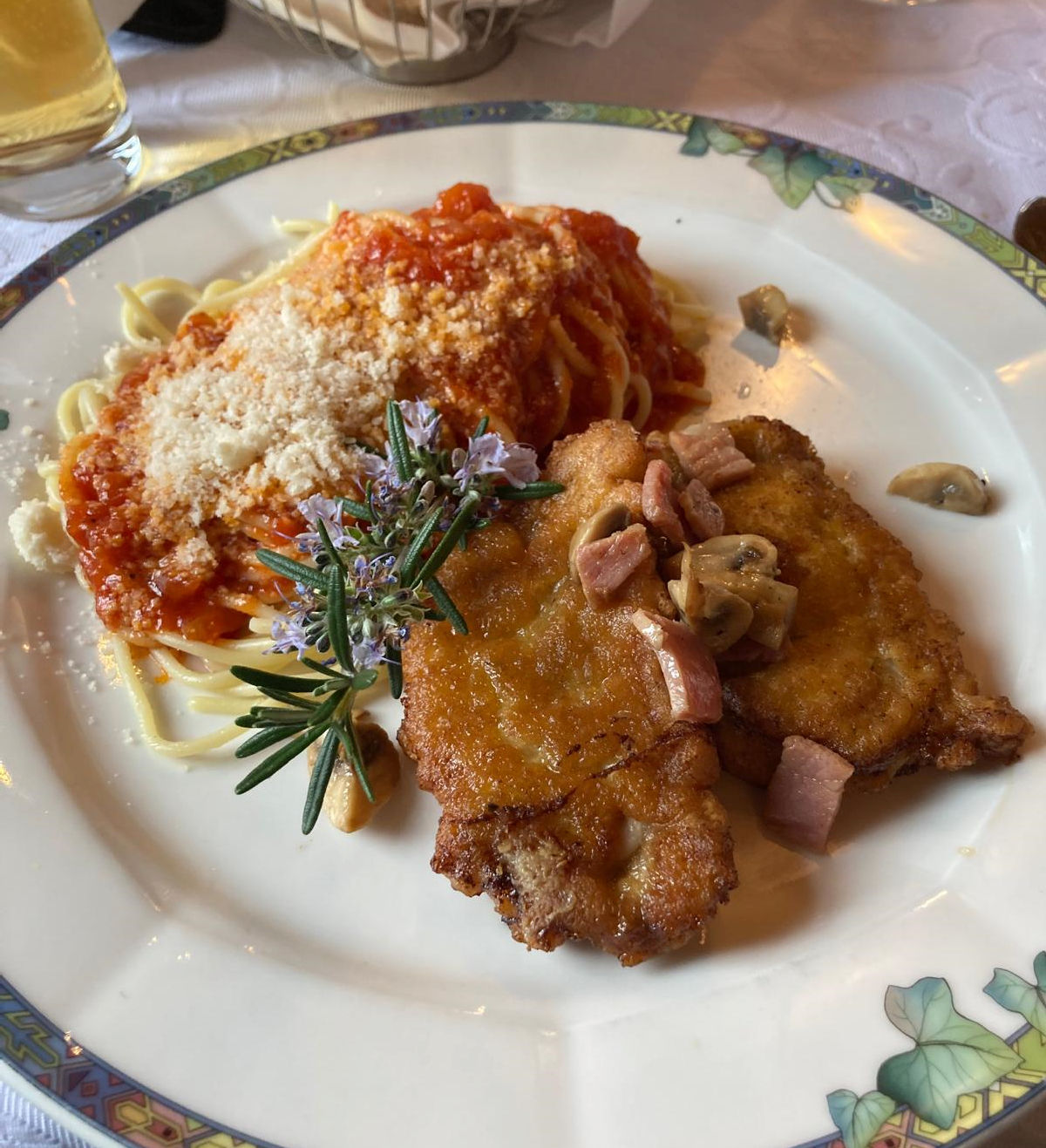 Kurz darauf erreichten wir das Zentrum von Magden und kehrten im Restaurant Blume ein. Das Menü war reichhaltig: Suppe, Salat und eine üppige Portion Piccata Milanese. Es war so gemütlich, dass die Zeit nur so verflog – laut Tagesplan hätten wir um 15 Uhr längst wieder unterwegs sein sollen.