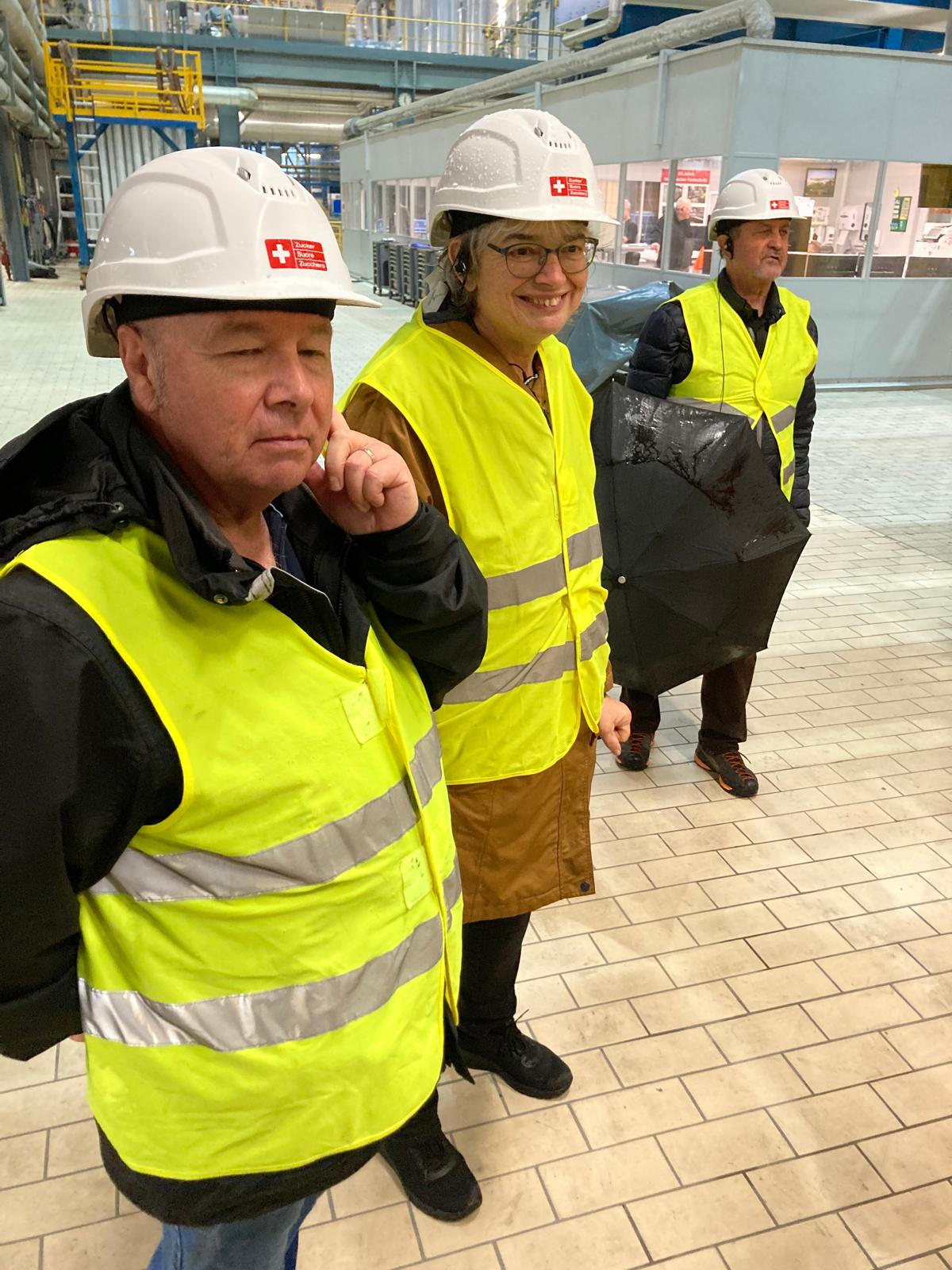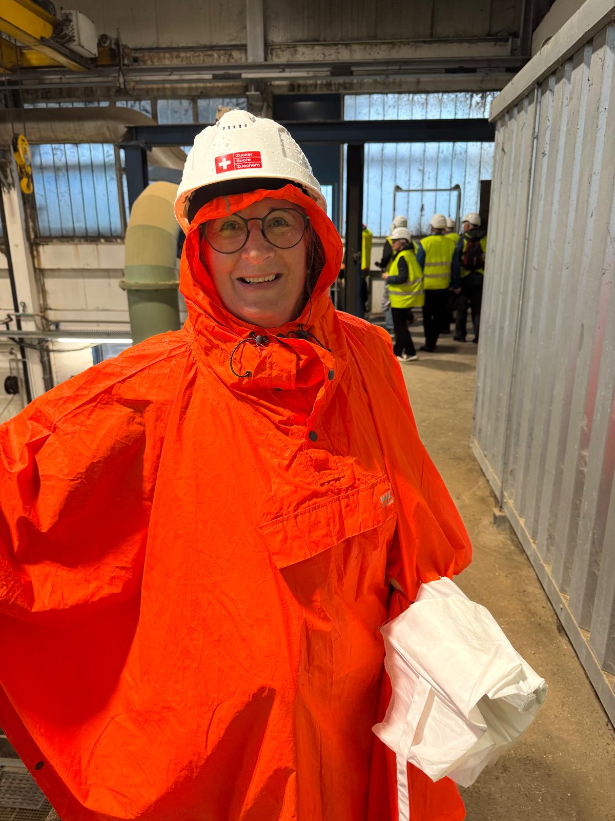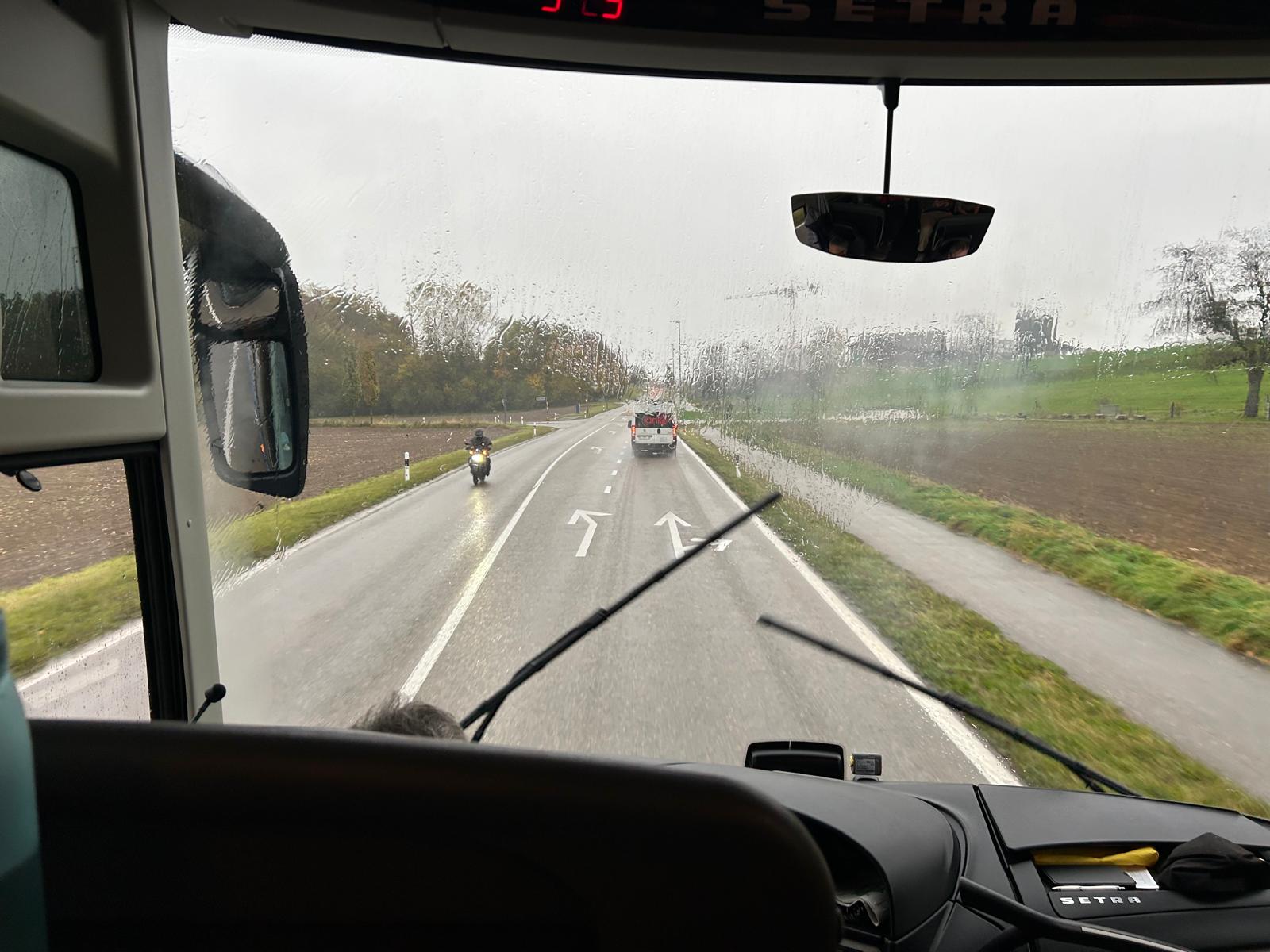 Pünktlich um 9:00 Uhr stiegen wir in Therwil in unseren bewährten Scherrer Reisebus. Zwei Stunden später standen wir vor dem Werkstor – und wurden prompt von einem Wetter begrüsst, das eher nach Nordsee klang: Regen wie aus Eimern, Wind mit 80 km/h – da flatterten selbst die Helme fast davon.