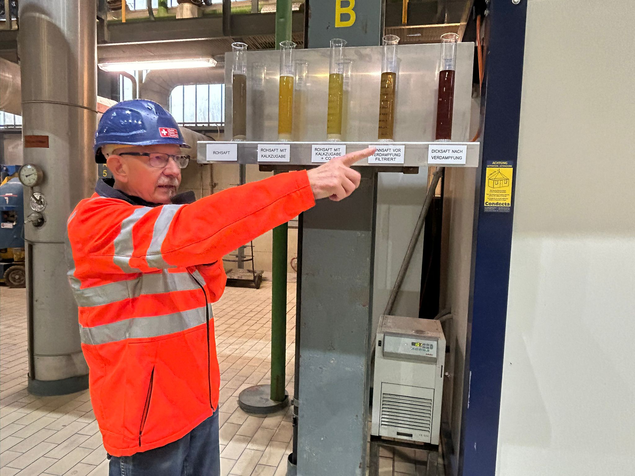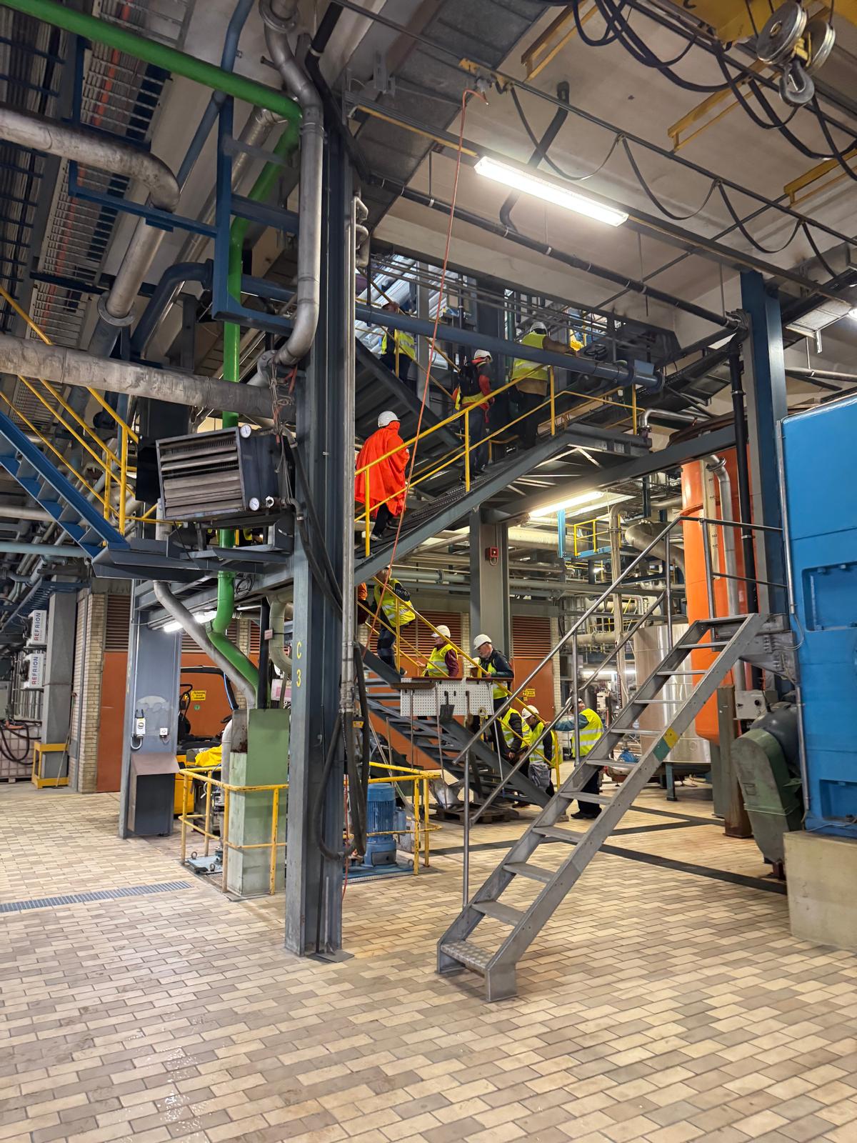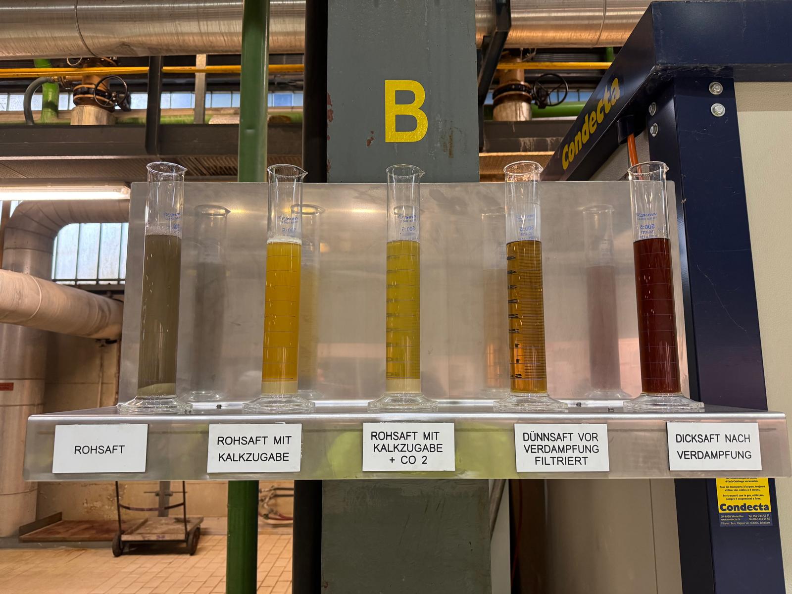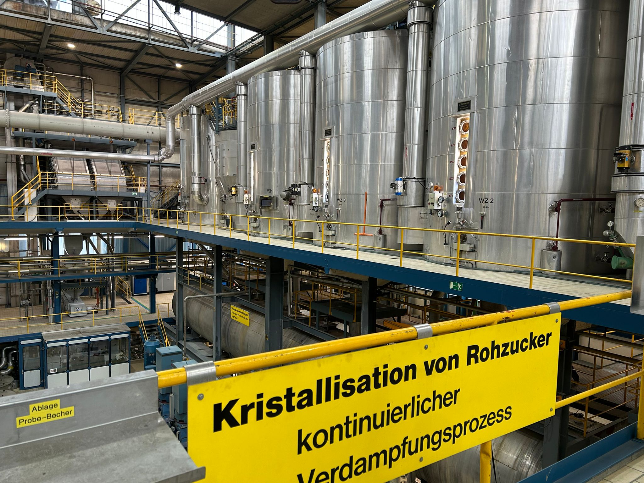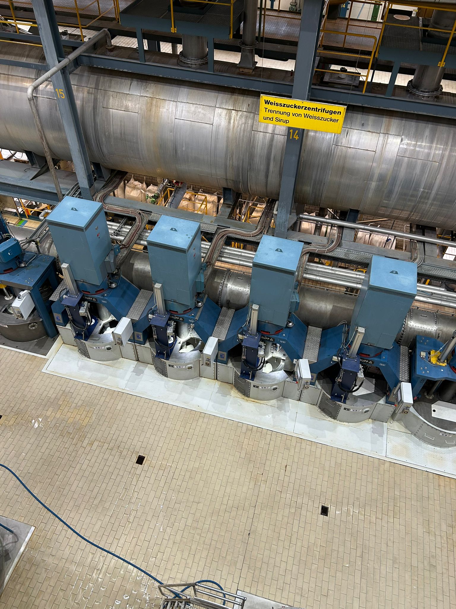 Doch dann – Erlösung! Der Innenbereich der Fabrik war warm wie ein tropisches Spa. Unsere Kleider trockneten schneller als ein Handtuch auf der Heizung. Und was wir sahen, war einfach Zucker: Maschinen, Silos, Förderbänder, Zentrifugen – ein technisches Wunderland auf mehreren Etagen.